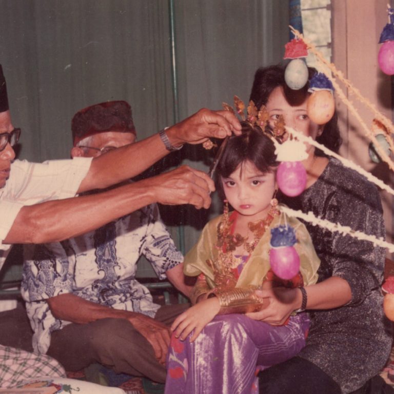 From this collection of hundreds of family photographs emerge stories of Ramlah Umar and her relatives, beginning in the 1970s during her teenage years in Enrekang, South Sulawesi, with the scenic Tanah Duri landscape as a backdrop. In the early 1980s, Ramlah moved to Magetan, East Java, where she lived for several years while her husband managed a leather-processing business. The business was eventually swept away by the 1997 economic crisis, forcing Ramlah and her family to return to Makassar, where they remain today. The collection also captures the atmosphere of homecomings by relatives living away, who returned to reconnect with family throughout the 1980s and 1990s. In addition, the photographs document the childhood of Ramlah’s three children, who were born and raised in the cultural setting of Magetan until their school years, along with family trips to popular tourist sites in Java such as Sarangan, Borobudur, and Taman Mini Indonesia Indah.