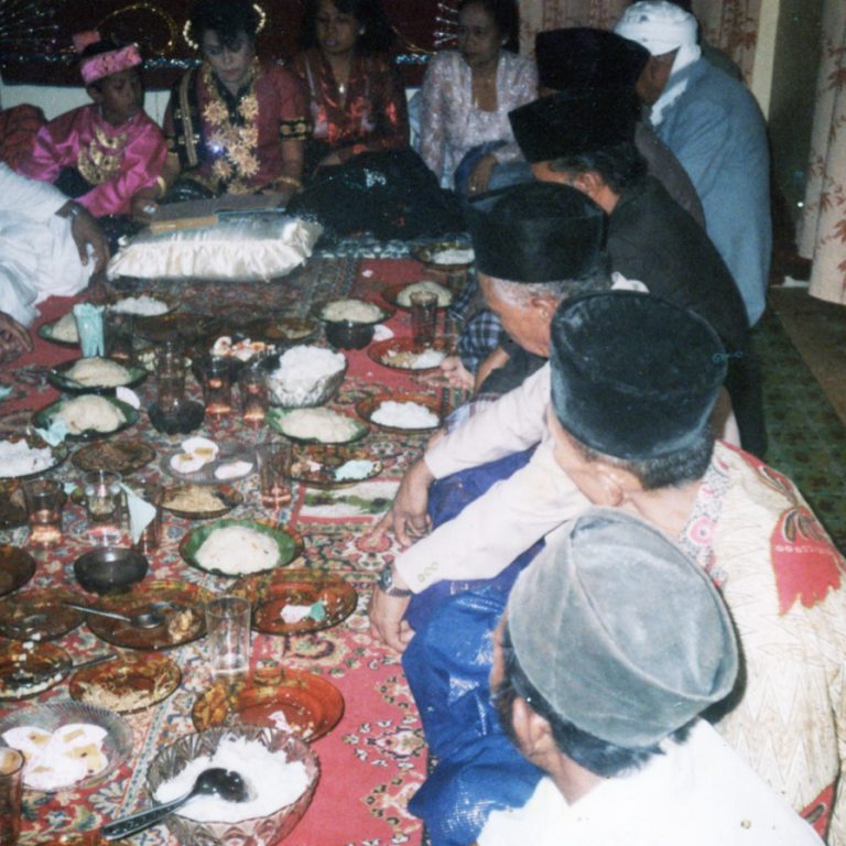 M. Yusuf was a civil servant in the Department of Religious Affairs, Bone Regency. With an educational background in the DDI Islamic boarding school, he also built a substantial collection of classical Islamic texts (kitab kuning). Among the family materials digitized are his school graduation certificate from Gemmi, Bengo, Bone, dated 1947, along with several other diplomas and identity cards from the 1950s, 1960s, and 1970s. The collection also includes dozens of family photographs, many depicting lively dining gatherings. One particularly striking image is a studio portrait of M. Yusuf with his brothers, captioned at the bottom: Pertemuan Saudara Makassar, 1952 (“Makassar Brothers’ Gathering, 1952”).